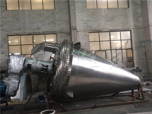 The conical spiral belt vacuum dryer is a multifunctional equipment that integrates mixing, drying, and distillation. It adopts a fully enclosed GMP cleaning design, and its drying efficiency is 3-5 times that of the same specification (double cone rotary vacuum dryer). The loading capacity can reach 80% of the cone volume, and the relative efficiency is increased by 6-10 times. The spiral belt stirrer can achieve a bottom-up spiral circulation stirring effect of materials, achieving efficient heat transfer characteristics. The material filling rate works at 30% -80%, and satisfactory utilization efficiency of heating area can be achieved. It is a new type of energy-saving, efficient, environmentally friendly and clean drying equipment.